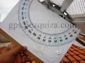 Preste bastante atenção primeiro ao dado elevação que você obteve no aplicativo dishpointer, neste exemplo, para o B4, 47º, com este dado é só colocar o inclinômetro na base da antena parabolica e ajuste o fuso da antena até que ela fique na elevação correta, veja abaixo o exemplo.
